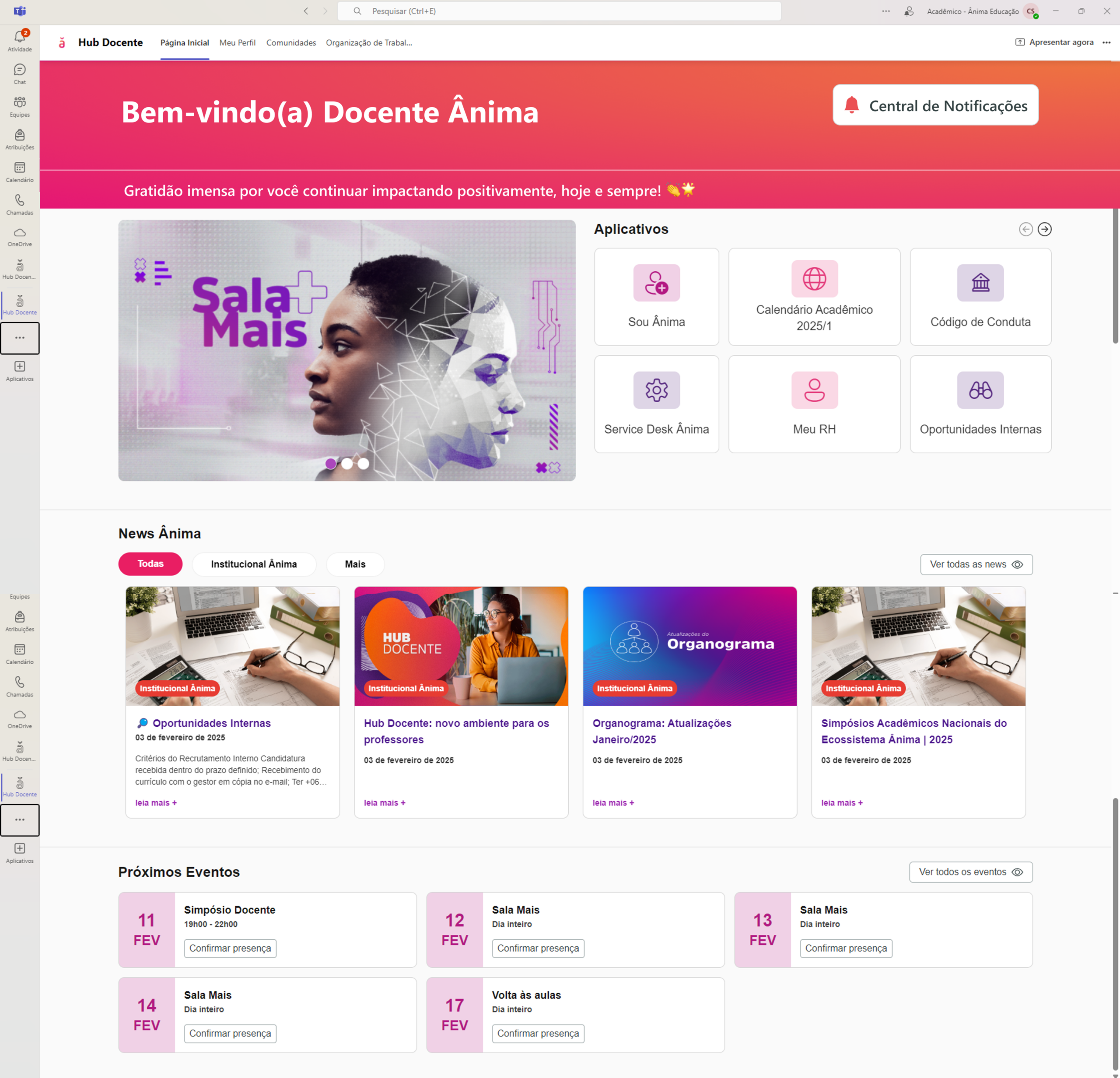 Por fim, ao integrar essas experiências em um único ambiente digital, o Hub Docente simplifica a rotina dos professores. Ao mesmo tempo, fortalece a colaboração acadêmica dentro da Ânima Educação.